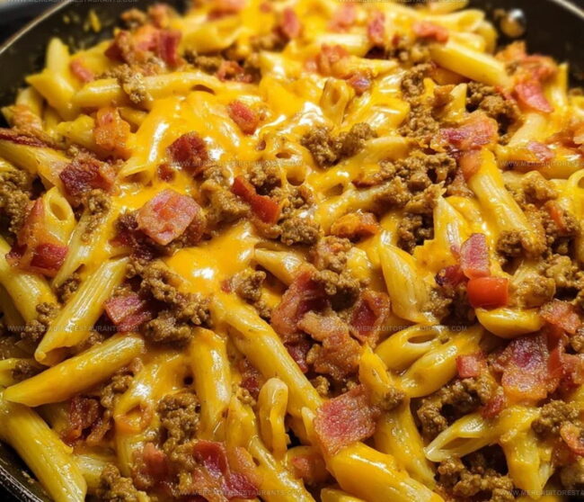 Bacon Cheeseburger Pasta Bake combines your favorite burger flavors in a comforting casserole that’ll make dinner feel like a celebration. Hearty pasta, crispy bacon, and melted cheese create a crowd-pleasing meal your family will devour in minutes.