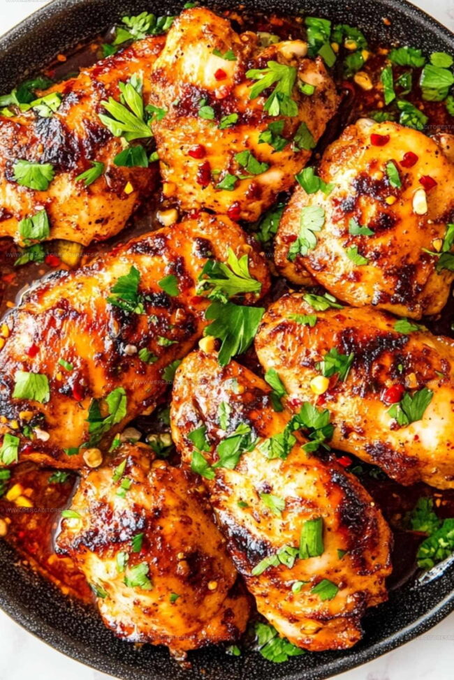 Sprinkle some fresh green onions and parsley on top to add a pop of color and extra zing. Your firecracker chicken is ready to make taste buds dance!