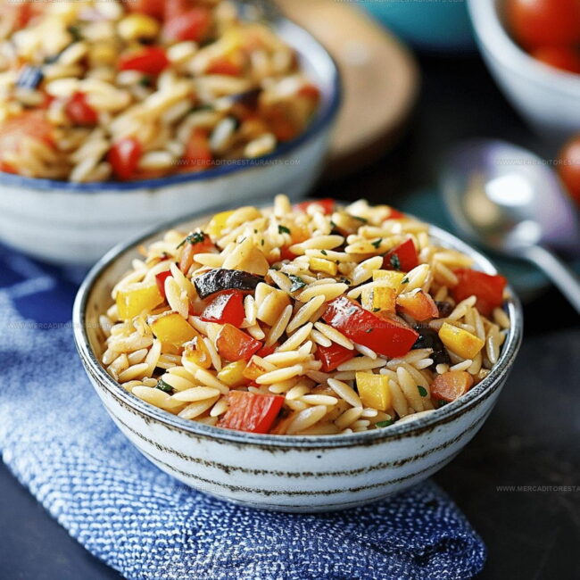Roasted vegetable orzo promises a delightful Mediterranean-inspired comfort meal that seamlessly blends rustic charm with vibrant flavors.