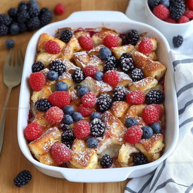 Warm berry French toast casserole brings delightful breakfast comfort straight from grandma’s kitchen, melting together juicy berries and golden bread. Prepare this simple make-ahead dish that fills your home with irresistible aromas and delivers pure morning happiness.