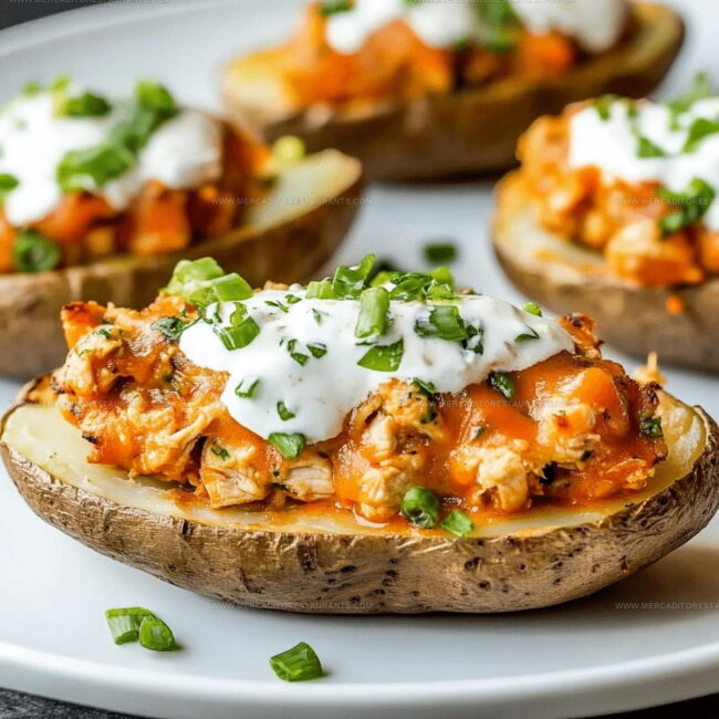 Primary Potatoes:Potato Protein:Flavor Enhancers:Cheese Components:Fresh Accents:Seasoning Basics:Cooking Preparation:Optional Toppings:Common Prep Tools Buffalo Chicken Twice Baked Potatoes