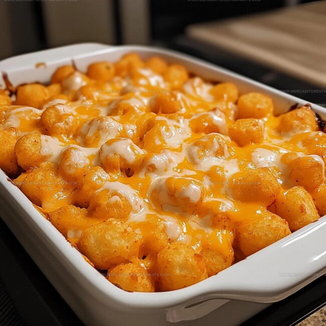 Diving into comfort food heaven, buffalo ranch chicken tater tot bake delivers pure crowd-pleasing deliciousness right to your dinner table. Crispy tots, spicy chicken, and cool ranch create a mouthwatering casserole that makes weeknight meals seriously satisfying.