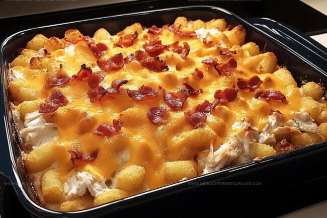 Crispy Tater Tot Casserole Recipe With Ranch Chicken and Bacon