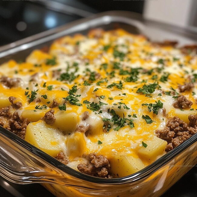 Comfort food dreams come alive with this cheesy ground beef and potato casserole that promises pure satisfaction from the first bite.