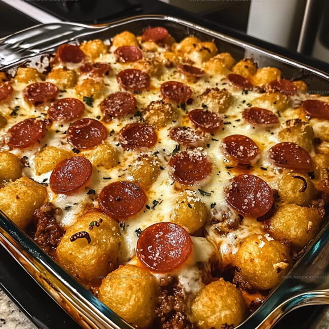 Cheesy pizza tot casserole brings together two ultimate comfort foods in one delightful dish that your family will devour in minutes. Crispy tater tots, melted cheese, and classic pizza toppings create a crowd-pleasing meal perfect for weeknight dinners or casual gatherings.