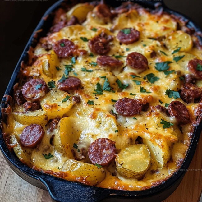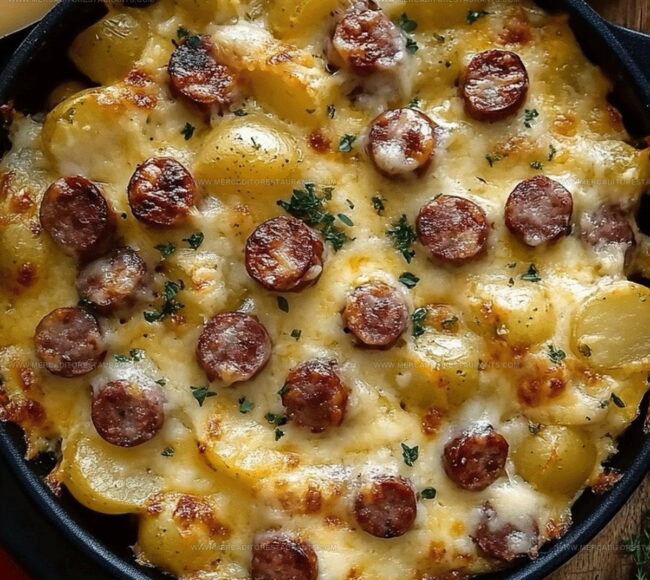 Cheese potato and smoked sausage casserole combines hearty ingredients into a cozy baked dish. Every bite feels rich, filling, and perfect for feeding a hungry family.