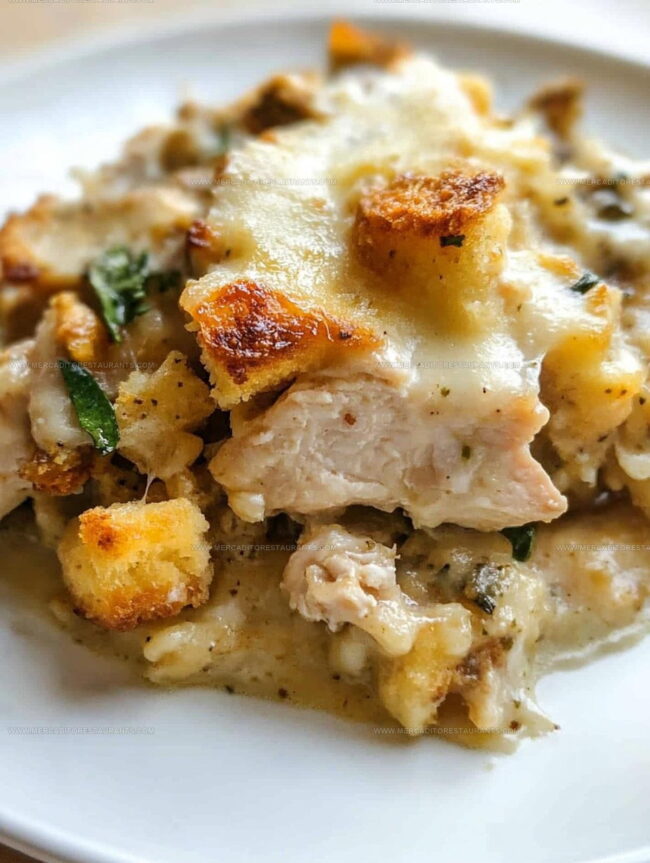 Chicken and stuffing casserole brings comfort straight from grandma’s kitchen to your dinner table. Hearty layers of tender chicken, savory stuffing, and creamy sauce create a satisfying meal that feels like a warm hug.