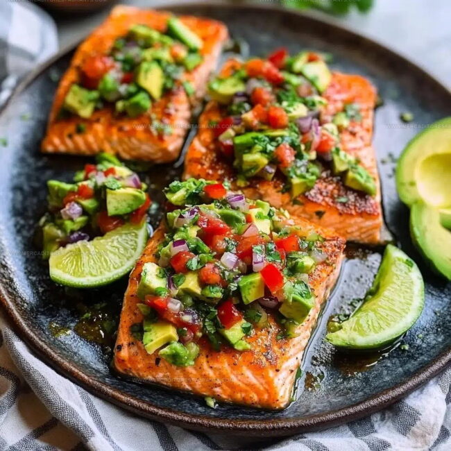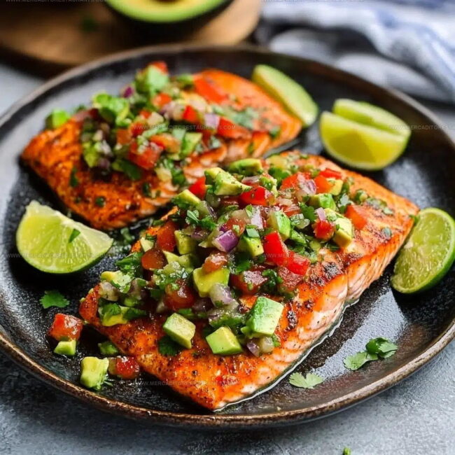 Chili lime seasoned baked salmon with avocado salsa brings zesty Caribbean flavors to your dinner table in minutes. Crisp salmon meets creamy salsa, delivering a fresh dinner that sparks excitement with minimal kitchen effort.