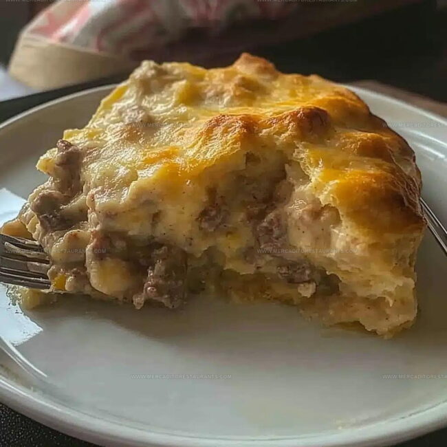 Southern comfort shines through this biscuits and gravy casserole that brings hearty breakfast flavors right to your family’s table. Creamy sausage gravy nestled between flaky biscuit layers creates a satisfying morning meal guaranteed to spark morning smiles.