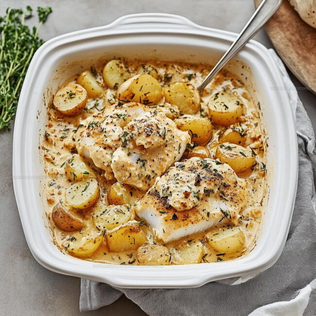 Baked Cod Recipe with Tender Potatoes in Smooth Cream Sauce