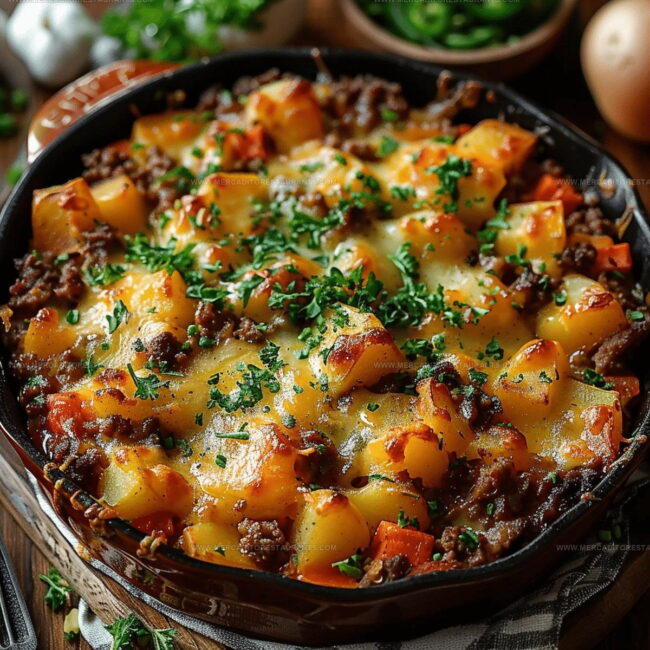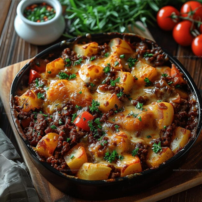 Hearty ground beef potato casserole promises pure comfort on your dinner plate.