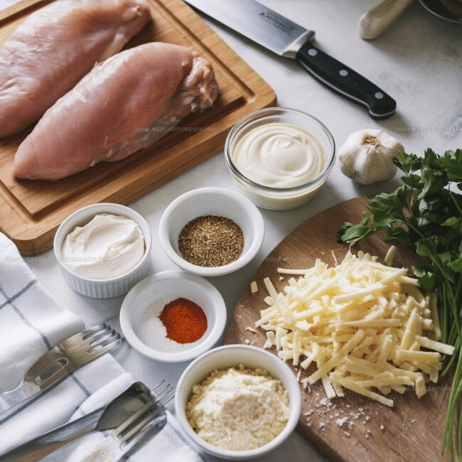 Main Protein:Creamy Topping:Seasoning Blend:Cheese Layer:Finishing Touch:Kitchen Tools Needed for Baked Cream Cheese Chicken