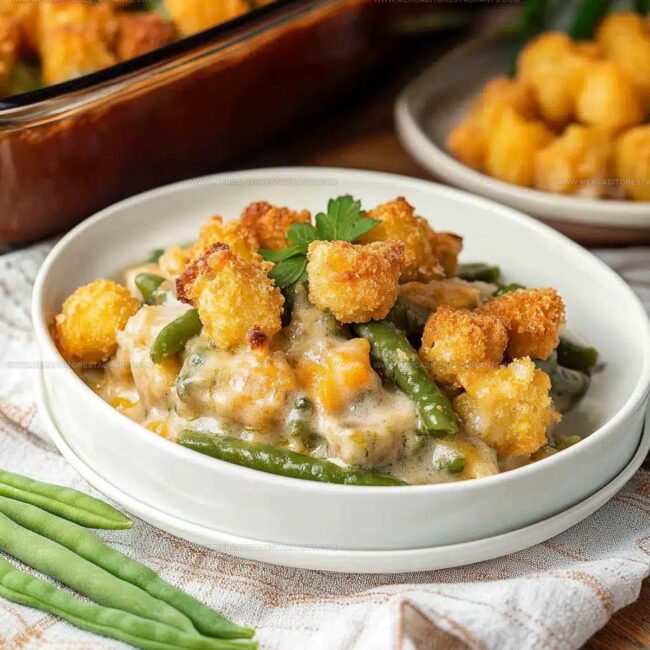 Green bean casserole with tater tots delivers comfort straight from Midwest kitchens to your dinner table. Crispy tots crown creamy green beans, creating a crowd-pleasing side dish that brings smiles to family gatherings.