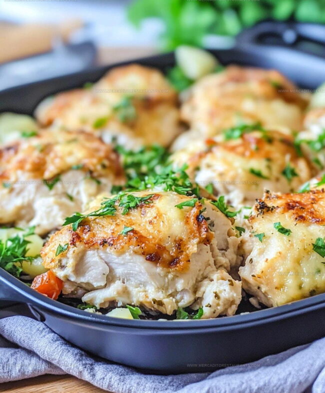 Creamy, savory flavors coat tender protein that emerges from the oven golden and satisfying.