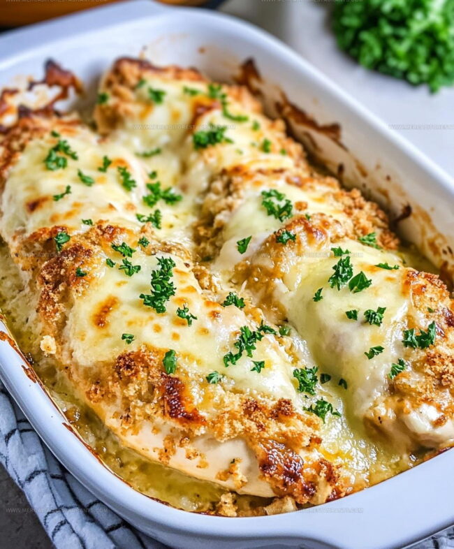 Slide the dish into the middle rack of the oven. Bake for 25-30 minutes until the chicken reaches 165°F internally. If the crumbs start looking too dark, just tent some foil over the top to protect them.