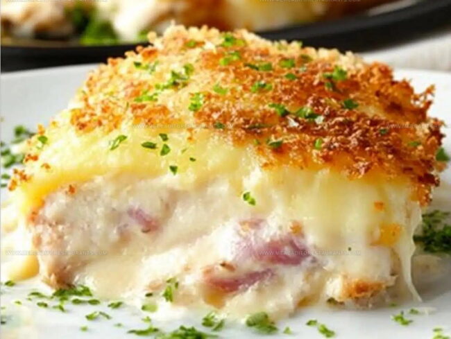 Chicken Cordon Bleu Casserole Recipe That’s Creamy & Cheesy