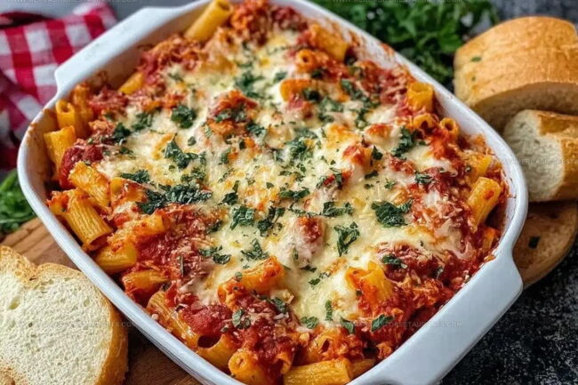 Dump and bake chicken parmesan casserole offers pure comfort on a hectic weeknight.