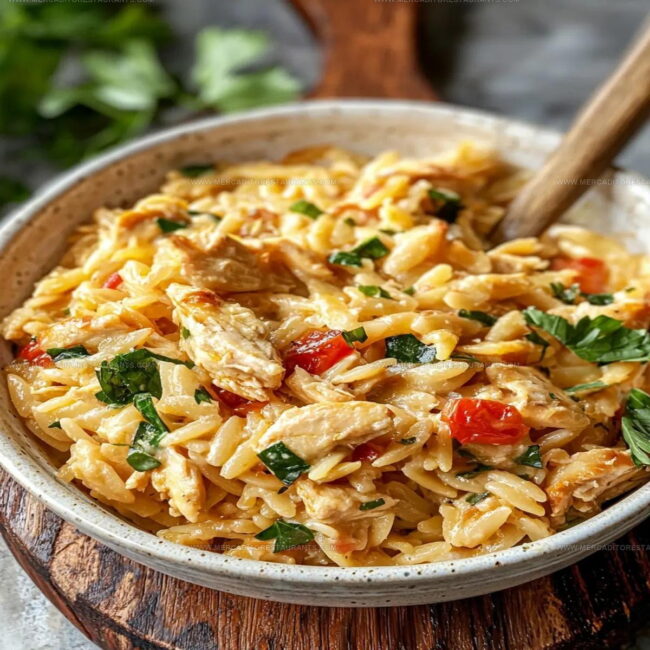 Monterey Chicken One Pan Orzo brings weeknight dinner magic straight to your kitchen with juicy chicken, creamy orzo, and melted cheese that comes together in a single skillet. Comfort meets convenience when protein and pasta dance deliciously, making clean-up a breeze and your taste buds absolutely happy.