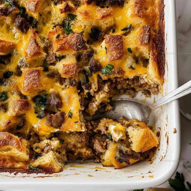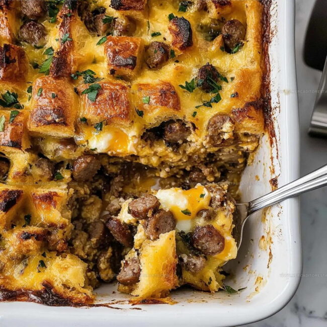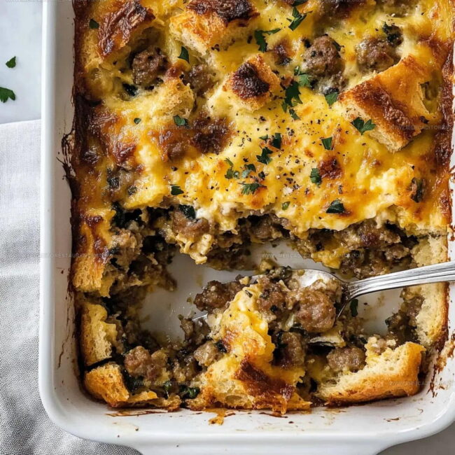 Hearty Egg Sausage and Bread Casserole brings weekend breakfast comfort right to your kitchen table. Savor each cheesy, satisfying bite that combines crispy bread, juicy sausage, and perfectly scrambled eggs in one delicious morning meal.