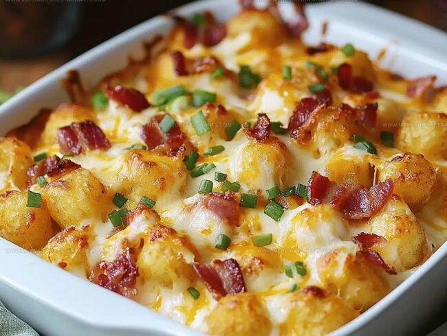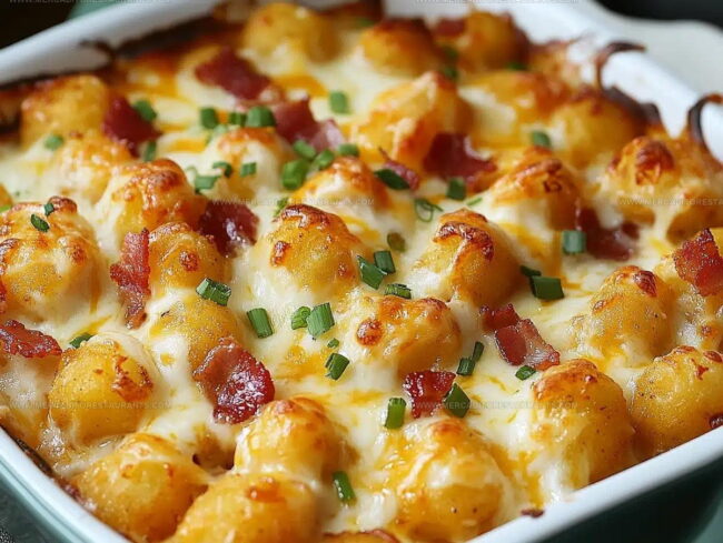 Chicken Bacon Ranch Tater Tot Casserole layers crispy tots with creamy sauce and savory toppings. This hearty dish delivers comfort in every bite.