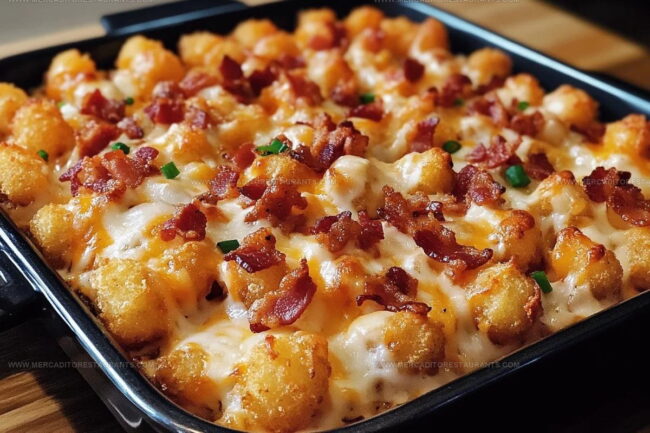 Chicken Bacon Ranch Tater Tot Casserole delivers pure comfort straight to your dinner table, packed with crispy potatoes, tender chicken, and savory bacon. Creamy ranch sauce brings all the delicious layers together in one satisfying, crowd-pleasing dish that disappears faster than you can serve it.