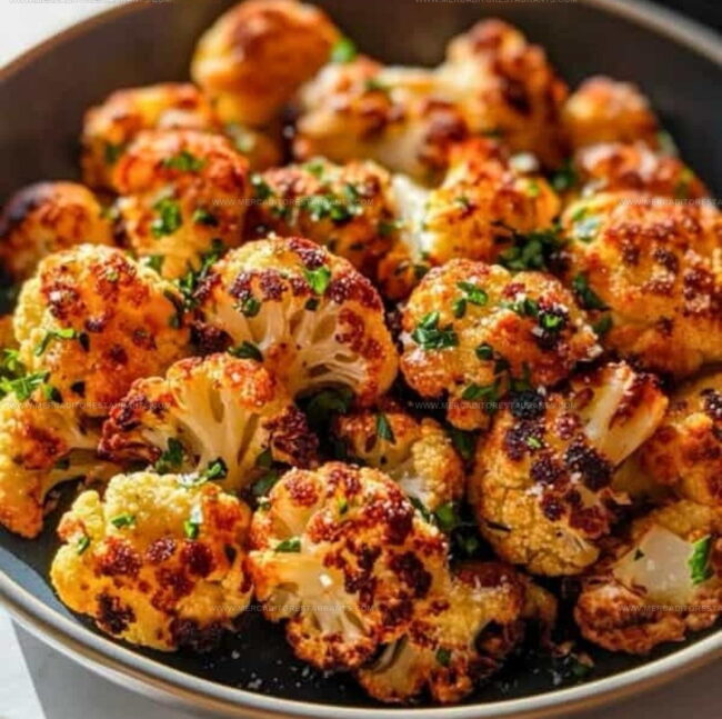 Pull the cauliflower from the oven when it’s golden brown and crispy at the edges. If you’re feeling fancy, scatter some chopped parsley on top or squeeze a bit of lemon juice over the dish. Serve hot and enjoy right away.