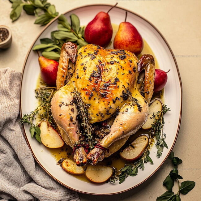 Herb Butter Roast Chicken with Pears brings savory elegance to your dinner table with minimal effort. Roasting chicken nestled among sweet pears creates a delightful meal that feels special without complicated techniques.