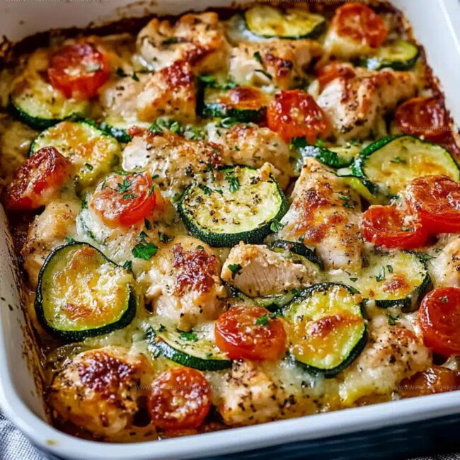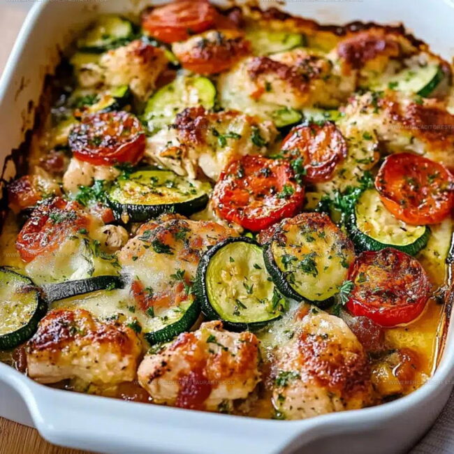 Mediterranean Chicken Zucchini Bake delivers a fantastic weeknight dinner straight from Greece’s sunshine-drenched kitchens. Layers of tender chicken, fresh zucchini, and rich Mediterranean herbs create a simple one-pan meal that brings Mediterranean flavors right to your dinner table.
