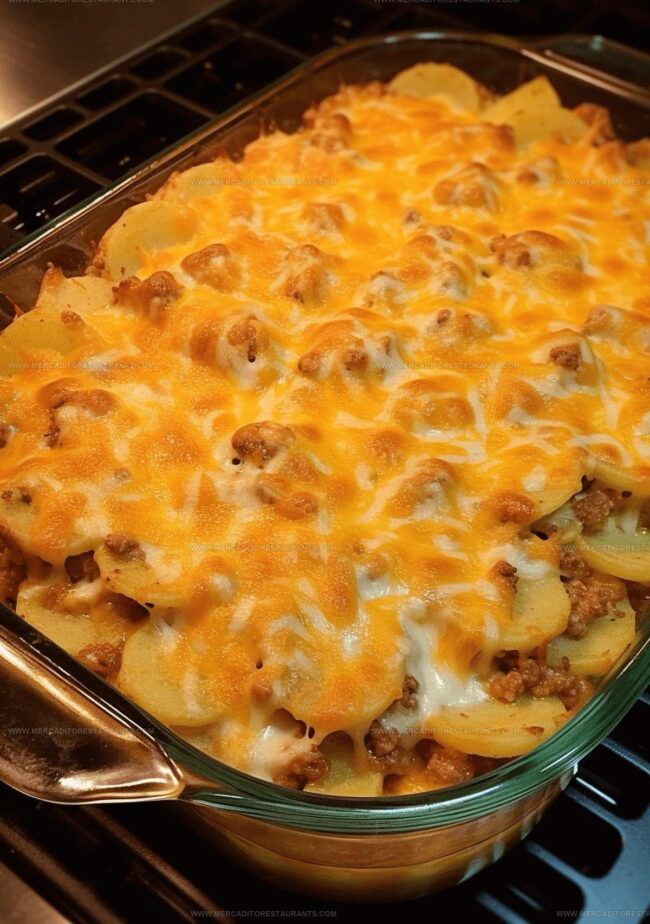Hamburger potato casserole brings hearty comfort right to your dinner table with layers of ground beef, crispy potatoes, and melted cheese. Packed with simple ingredients and pure homestyle flavor, this classic dish delivers a satisfying meal that feeds hungry families without any fuss.