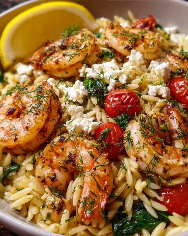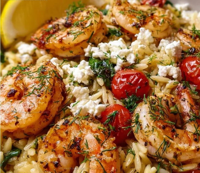 Zesty lemon feta orzo roasted shrimp brings Mediterranean flavors right to your dinner table with minimal effort and maximum deliciousness. Tender shrimp nestled among herby orzo creates a quick, satisfying meal that feels like a seaside escape without leaving your kitchen.