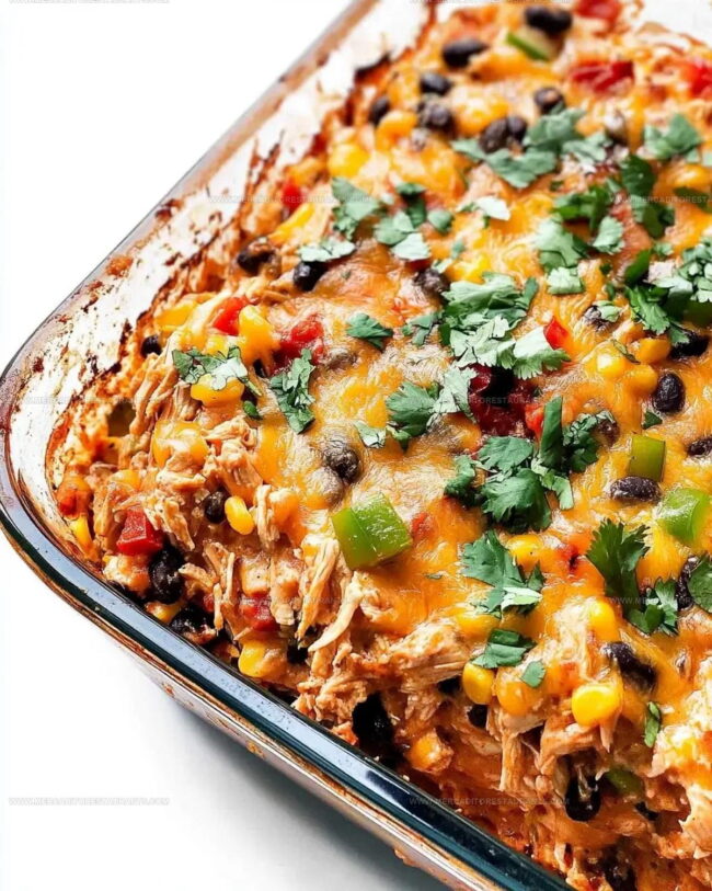 Chicken burrito casserole combines comfort food with Tex-Mex flair in one seriously delicious dish.