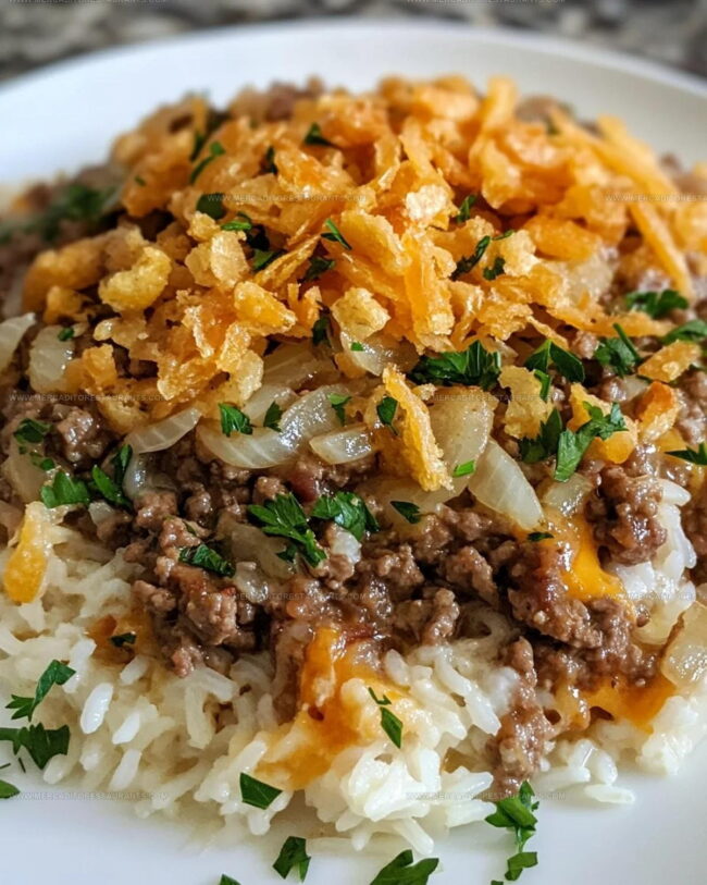 French Onion Ground Beef and Rice Casserole brings comfort to your dinner table with a hearty blend of savory ground beef, caramelized onions, and fluffy rice. Creamy, cheesy, and packed with rich flavors, this simple one-pan meal will become a family favorite you’ll crave again and again.