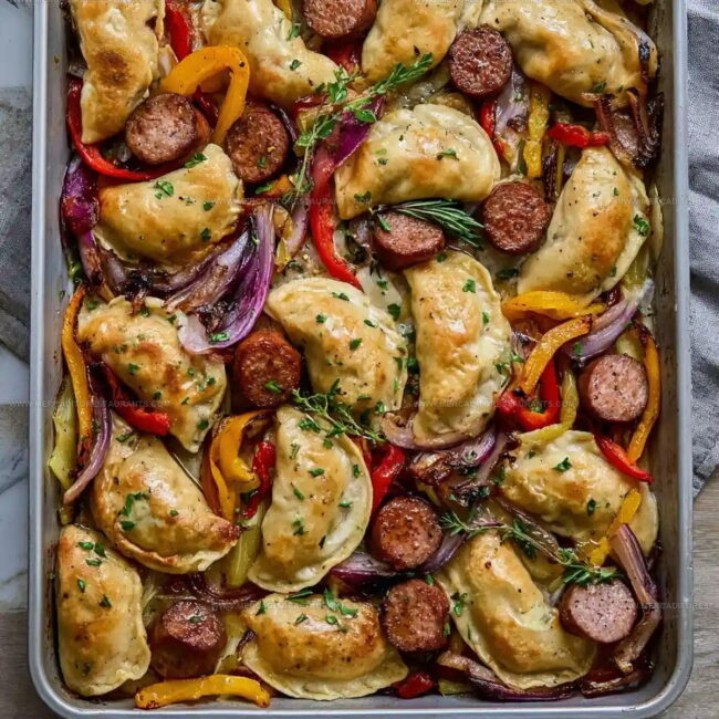 Pierogi sausage and veggie sheet pan dinner brings comfort straight from Poland to your dinner table, making weeknight meals a breeze with minimal cleanup and maximum flavor. Sizzling sausages, tender pierogies, and roasted vegetables create a hearty one-pan feast that saves your time and satisfies your hunger.