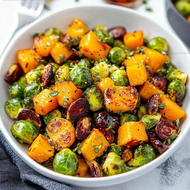 Roasted Butternut Squash and Brussels Sprouts bring autumn comfort straight to your dinner table with caramelized veggie goodness that feels like a warm hug from the kitchen. Rich golden cubes of squash and crispy green sprouts combine for a simple side dish that makes vegetables taste absolutely delicious.