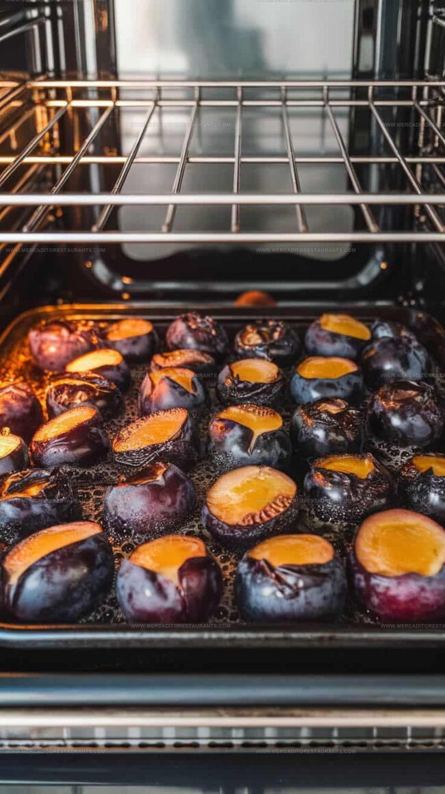 Pop the baking dish into the oven preheated to 400°F. Roast for 20-25 minutes, giving the plums a gentle stir halfway through. Your kitchen will smell incredible as the fruit softens and creates a syrupy sauce.
