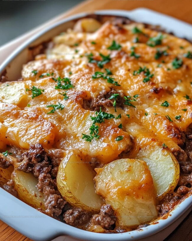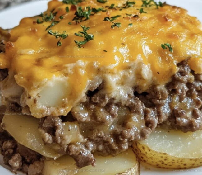Hobo Casserole comes together with hearty ground beef and tender potatoes that make dinner simple and satisfying. Baked with straightforward ingredients, this comforting one-dish meal delivers pure home-style goodness perfect for your family table.