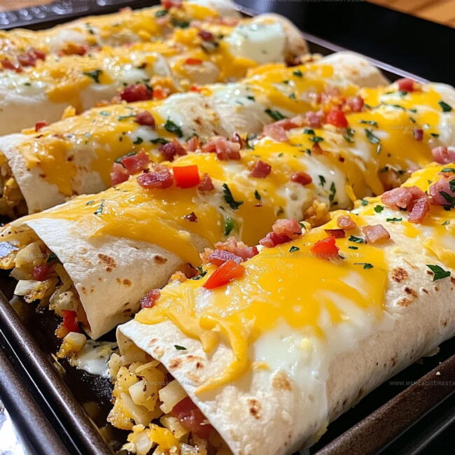 Whipping up sheet pan breakfast burritos makes morning meals a total game-changer for busy families. Packed with scrambled eggs, crispy bacon, and melted cheese, these easy-to-prep bundles will have everyone racing to the kitchen table.