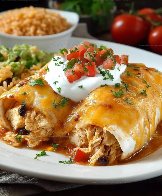 Smothered baked chicken burritos bring comfort straight to your dinner table with minimal effort and maximum flavor. Wrapped tortillas filled with tender chicken and melted cheese create a satisfying meal your family will devour in minutes.