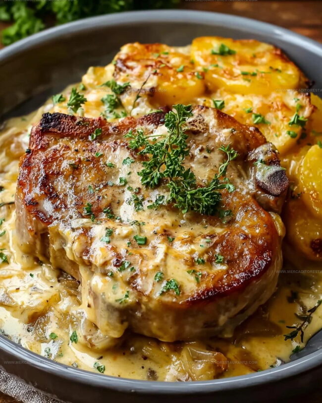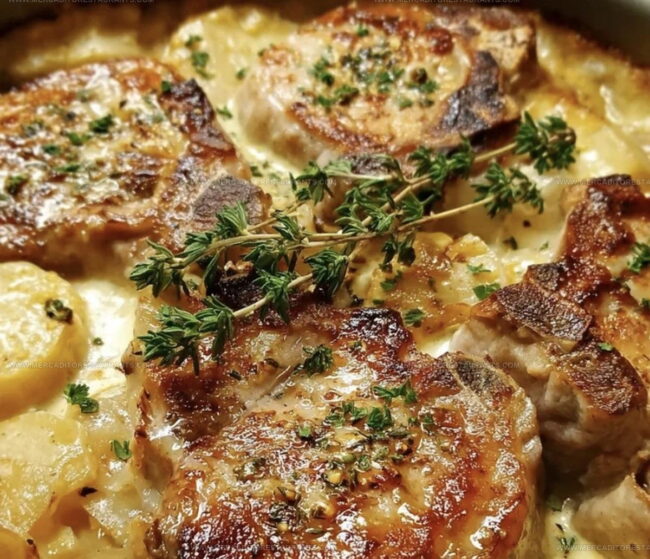 Hearty Pork Chop and Scalloped Potato Casserole brings comfort straight from your kitchen, guaranteed to satisfy hungry family members with its rich, creamy layers and tender meat nestled between cheesy potato goodness.