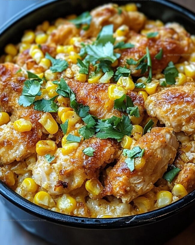 The smoky, slightly charred flavors of elote meet tender chicken in a baked creation that feels both familiar and exciting.