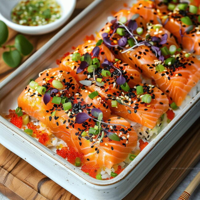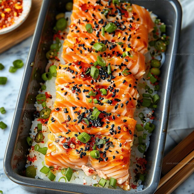 Rice Layer:Salmon Layer:Toppings:Serving Accompaniments:Equipment You’ll Use for Salmon Sushi Bake