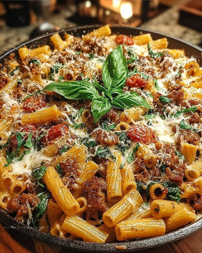 Creamy Tuscan Sausage Pasta Bake brings comfort straight from an Italian kitchen to your dinner table. Warm cheese, hearty sausage, and rich sauce combine for a satisfying meal that makes your family smile.