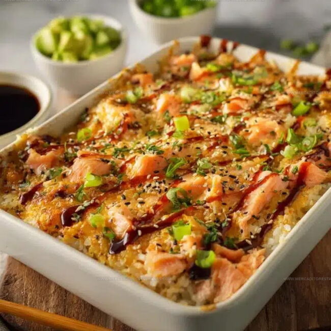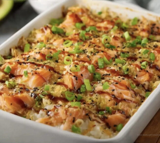 Salmon sushi bake recipe fans know this casserole-style dish brings all the satisfaction of their favorite Japanese rolls without the fuss of individual preparation.
