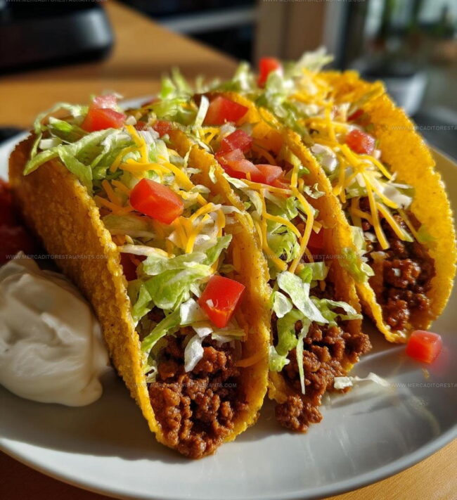 Spoon the seasoned beef into each taco shell. Make sure you distribute the meat evenly so every bite is packed with flavor.