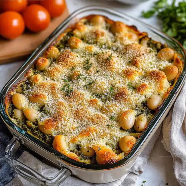 Creamy white bean and pesto bake brings comfort straight from an Italian kitchen to your dinner table. Melted cheese, herby pesto, and tender beans create a simple yet satisfying meal that connects your family around warm, delicious flavors.